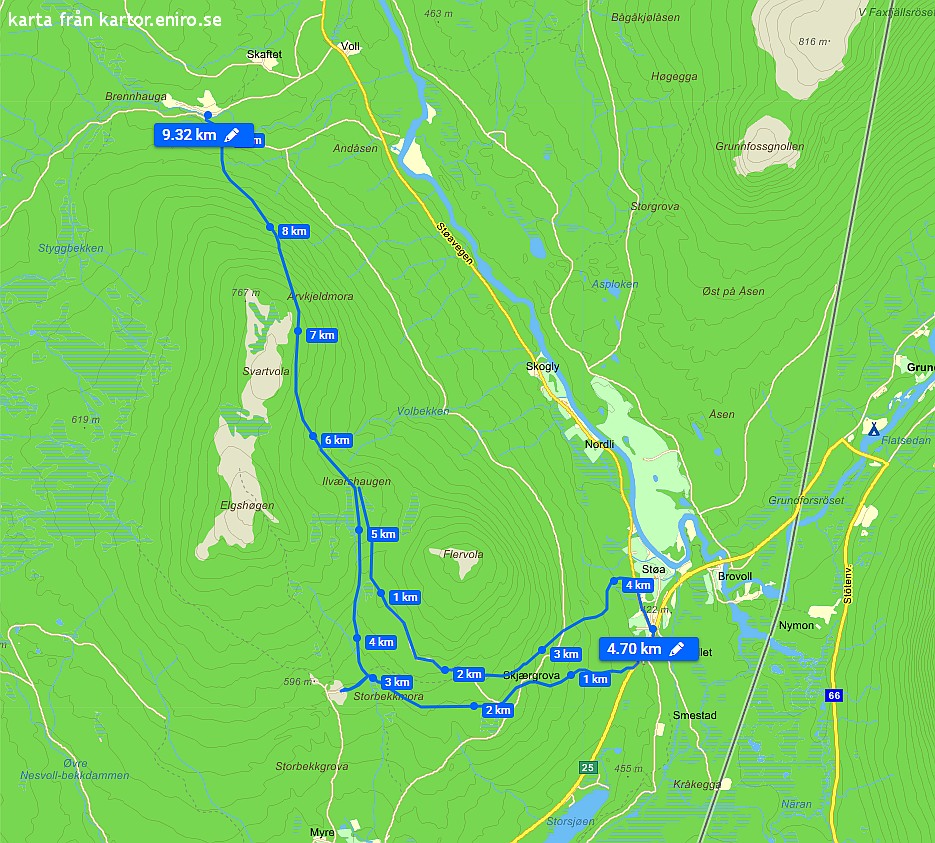 Den här turen startar vid den nedlagda lanthandeln i Støa och kan lätt
