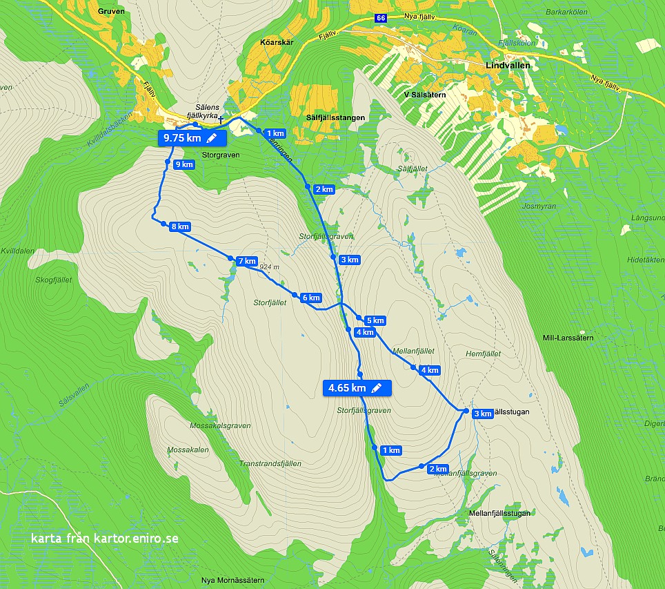 sträckningen går i en åtta. Men, vi får många kilometer på kalfjället,